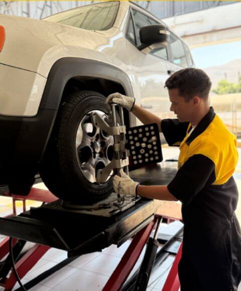 En alineamiento, balanceo y enllante.